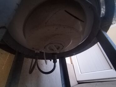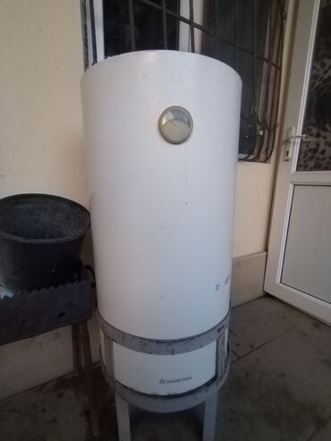 Ariston su qızdırıcısı (elektrik) – şaquli silindrik model. Üst paneldə mexaniki termometr/temperatur göstəricisi var. Aşağı hissədə Ariston loqosu və servis qapağı yerləşir. Metal dayaqlı konstruksiya sayəsində yerüstü quraşdırmaya uyğundur. Mətbəx, hamam və ya təsərrüfat sahələrində isti su təminatı üçün praktik həll. Su çəninin izolyasiyası istiliyi saxlamaga kömək edir, elektriklə işləyir. Şəbəkəyə qoşulma və su giriş‑çıxış boruları üçün standart bağlantılarla gəlir.