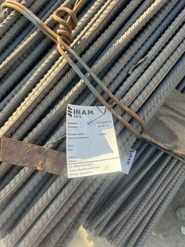 Məhsul: Armatur (polad armaturlar) Təsvir: - Beton konstruksiyalarda istifadə üçün nervürlü və hamar polad armatur dəstləri - Markalanma: A500C (etiketdə göstərilib) - Standartlar: GOST 34028-2016...