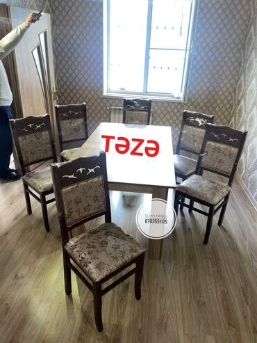 Qonaq otağı üçün, Yeni, Açılmayan, Dördbucaq masa, 6 stul