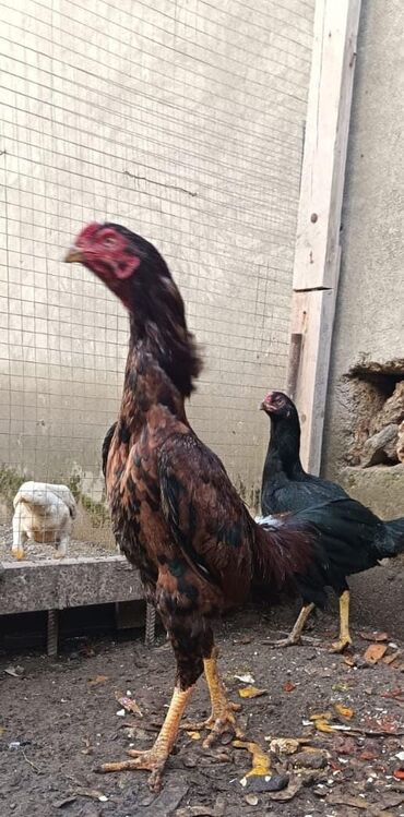 - Cins: Aseel (uzunboyun, güclü skeletli döyüşçi tip)
