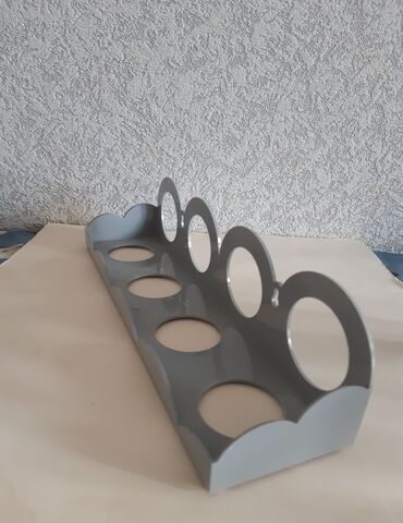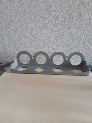 - Rəf 4 qab üçün nəzərdə tutulub, dairəvi tutacaqları və alt hissədə dairəvi yuvaları var; masaüstü yerləşdirmə və divardan asma üçün arxasında deşiklər mövcuddur
