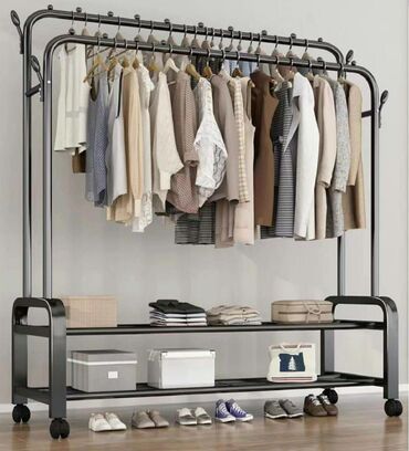 istənilən yerə uyğun gəlir və uzun asılqan rels köynəkləri, şalvarları, paltoları və digər uzun paltarları saxlaya bilər. Rəflərin alt qatı ayaqqabıları, saxlama qutularını və digər əşyaları saxlamaq üçün uyğundur. Yanlarında çanta, papaq və s. saxlamaq üçün 4 qarmaq var.