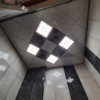 Asma tavan panelləri və LED işıq sistemi - Material: parlaq səthli asma tavan lövhələri - Dizayn: açıq bej fon üzərində mermer naxışlı tünd zolaqlar; ortada iki kvadrat inteqrasiya olunmuş LED pan...
