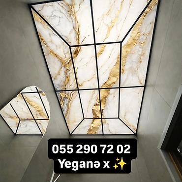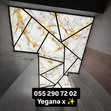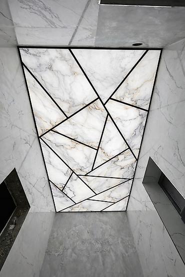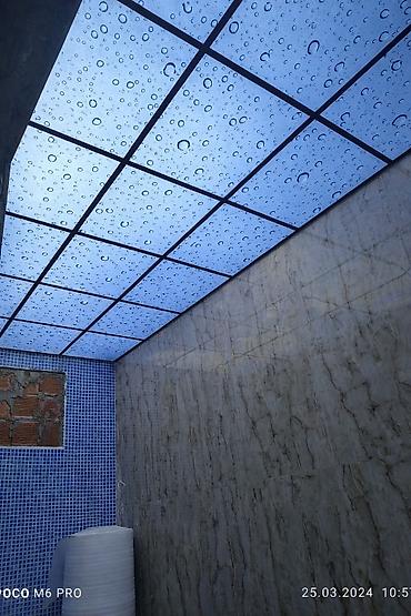 - Şüşə-effektli, işıqkeçirən panellər: mərmər damarları və abstrakt həndəsi bölmələr, eləcə də “su damcıları” printi kimi dizayn variantları