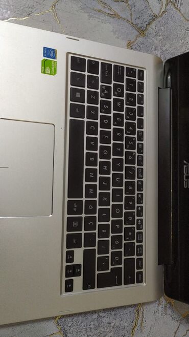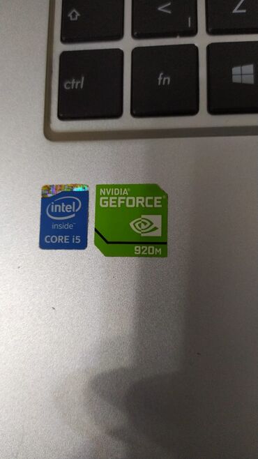 - Brend nişanları: “ASUS” loqosu üst qapaqda, “intel inside Core i5” və “NVIDIA GeForce 920M” stikerləri klaviatura yanında