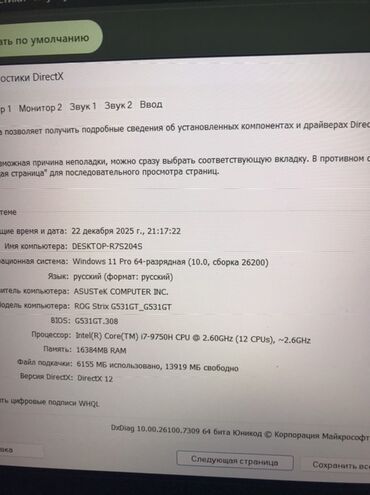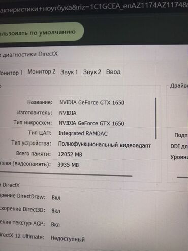 - Saxlama: sistemdə göstərilən ümumi yaddaş 12052 MB; ayrılmış video yaddaşı ~3935 MB