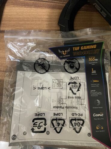 ASUS TUF Gaming 23.8' FHD 1920x1080) Gaming Monitor, IPS, 165Hz, Xüsusiyyətlər: - Ekran: 23.8 düym, LCD/IPS panel - Model: VG2491R, Versiya: VG249Q1RY (etiket üzrə) - İstehsal tarixi: İyul 2023 - ...