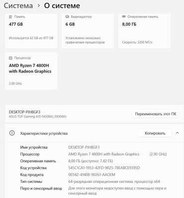 İşlənmiş ASUS TUF Gaming, 15 ", AMD Ryzen 7, 512 GB