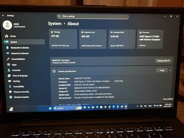 - Daxili yaddaş: 477 GB SSD (sistemdə 413 GB istifadə olunub görünür)