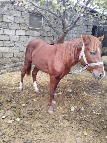 ErkəkAt satılır – qırmızı-kəhvəyi rəngdə, alnında kiçik ağ ləkəsi olan yerli cins at.