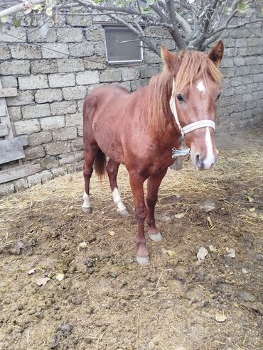 Satılır: Qonur rəngli at - Rəng: tünd-kəhvəyi (qonur), alınında ağ ləkə, burun hissəsində və iki ön dırnaqda ağlıq - Cins: yerli tip - Cinsiyyət: erkək - Boy-buxun: orta hündürlükdə, möhkəm skelet...