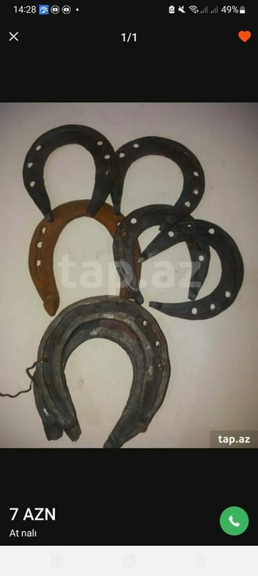 Dəmir nal (at nalı) - Material: ağır, bərk döyülmüş dəmir - Forma: U formalı klassik at nalı - Üzərində dırnağa bərkidilmə üçün çoxsaylı dırnaq deşikləri var - Kənarları qalın, dayanıqlı; ön hissə...