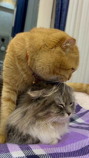 Yarıcins şıltaq və mehriban qız pişik balaları. Qonşumuz tərəfindən həyatlarının ilk həftəsində çölə atılmışdırlar 😢 Anaları - Şotland. Qum tərbiyəsi var. 4-5 aylıq, birə və qurd dərmanı verilib....