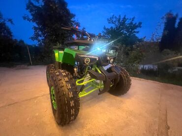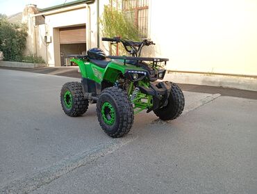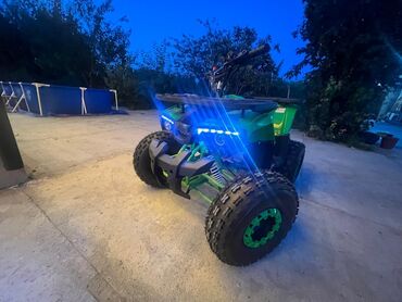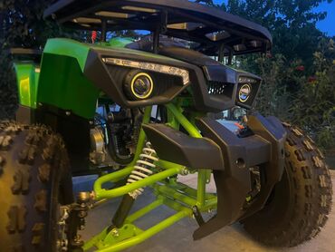 AvtomatikYaşıl rəngdə uşaq ATV-si. Dörd təkərli dizaynı və böyük təkərləri sayəsində müxtəlif ərazilərdə rahat istifadə oluna bilər. Ön hissədəki güclü işıqlar və baqaj yeri onu həm əyləncə, həm də kiçik yüklərin daşınması üçün uyğun edir. Təkərlərin yaşıl halqalı diskləri ümumi görünüşə canlılıq qatır.125cc