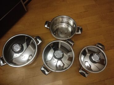- Müxtəlif ölçülü 3 qazan + 3 qapaq (termometrlə).
