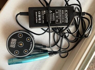 Peşəkar tatu maşınları ilə istifadəyə yararlı universal güc bloku və adapter. Qutu üzərində “AURORA-2 TATTOO” qeyd olunur.