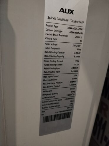 - Soyutma cərəyanı: 12.5A; İsitmə cərəyanı: 11.2A