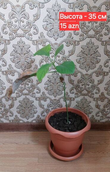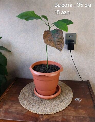 Məhsul: Avokado fidanı (saksıda) Təsvir: - Toxumdan yetişdirilmiş gənc avokado ağacı - Hündürlüyü təxminən 35–50 sm, elastik gövdə və iri, sağlam yarpaqlar - Plastik saksıda, qida maddəli torpaq q...