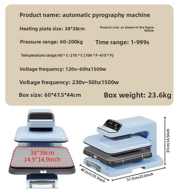 Əgər siz istilik ötürmə bacarıqlarınızı təkmilləşdirmək, istehsalınızı genişləndirmək, öz biznesinizi qurmaq və ya hətta işinizi satmaq istəyirsinizsə, bu avtomatik istilik presi mükəmməl seçimdir! O, istilik köçürməsini həmişəkindən daha sürətli və asan edən müxtəlif faydalı rejimlərə malikdir! Siz geyim, aksesuar, zərgərlik, hədiyyələr və daha çoxunu peşəkar keyfiyyətli nəticələrlə asanlıqla fərdiləşdirə bilərsiniz.