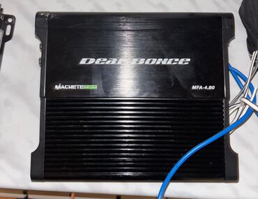 - Deaf Bonce Machete Fight MFA‑4.80 – 4 kanallı gücləndirici. Ön/arxa akustikanın ayrılıqda idarəsi üçün uyğundur, səsin təmizliyini artırır, sabit bağlantı klemmaları və ventilyasiya olunan korpus.