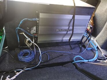 - Gücləndirici: SOUND MAX (Soundmax) monoblok/amp, yan panelində terminal bloku və sərinlədici ilə. RCA və güc kabelləri qoşuludur.