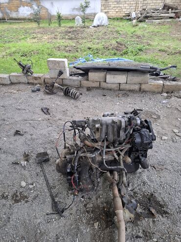 - Mühərrik komplekti: yan avadanlıqları ilə birlikdə (generator və s.), egzoz borusu hissələri görünür.