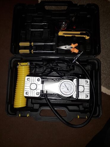 - Güclü metal korpuslu 12V avtomobil kompressoru, üzərində manometr (psi/bar göstəricili)