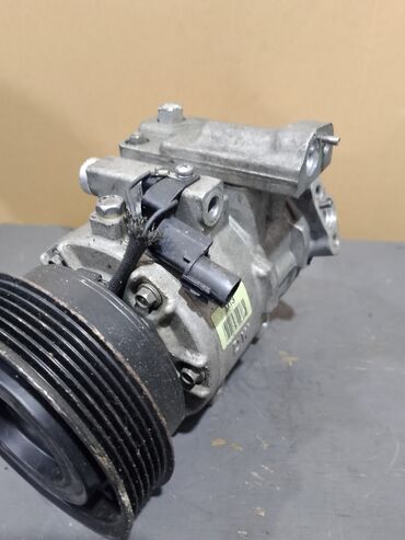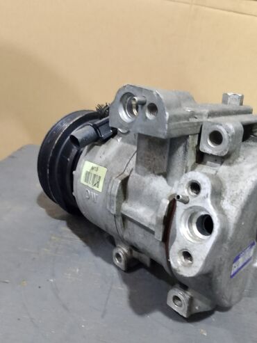Gümüşü rəngdə, istifadəyə yararlı kondisioner kompressoru. Avtomobilin kondisioner sistemində soyuducu agentin dövranını təmin etmək üçün nəzərdə tutulub. M13 markalanması var. Avtomobiliniz üçün etibarlı seçim ola bilər.