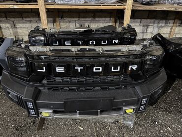 - JETOUR üçün ön bamper və radiator panjuru: iri “JETOUR” yazılı qara panjur, geniş qoruyucu alt hissə, sis fənəri yuvaları, park sensoru yerləri, dekorativ işıq blokları üçün sahələr.