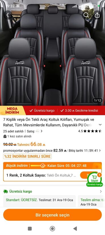 Avtomobil oturacaq üzlükləri – qırmızı/qara dizayn - Model: universal ölçü, minik avtomobillərinin əksəriyyətinə uyğun - Komplekt: ön iki oturacaq üçün üzlük + arxa skamya üçün bölünməyən set, baş...