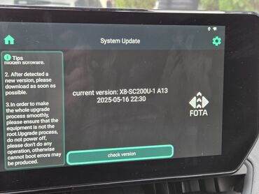 - Sistem yeniləmələri (FOTA) – mövcud versiya ekranda: X8-SC200U-1 A13