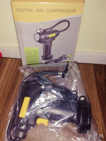 Avtomobil üçün təkər dolduran. Avtomobilde 12 volt gələn hər yerdə qoşulub istifadə etmək olar. İstediyin hava dərəcəsini qoymaq mümkündür. Məsələn 2.0, 2.2, 2.5 istədiyin dərəcəni qoyub təkərə havani vurmaq imkani var. Xaricdən gətiribler hədiyyədi. Lazim olmadığı üçün satıram. Yenidir heç istifadə edilməyib. Top, velodiped, motosiklet, avtomobil hər hansi hava ilə dolan nə varsa doldurmaq mümkündür