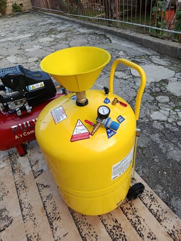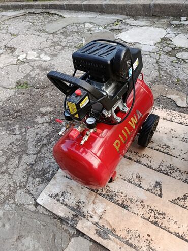 - Hava kompressoru: Pulwa Air Compressor, kiçik tutumlu qızmızı qəbuledici çən, manometr, təzyiq tənzimləyicisi və iki çıxışlı tezbağlayıcı fittings. Təkərli və daşıma tutacaqlıdır, elektriklə işləyir.