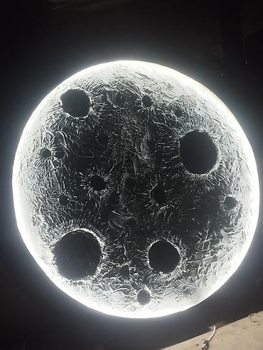Istənilən ölçudə və rəngdə ay və yer kürəsinin dekorunun 3gün ərzində hazırlanması, əldə olan məhsul: LED işıqlı “Ay” divar dekoru eni uzunu 1.08metr