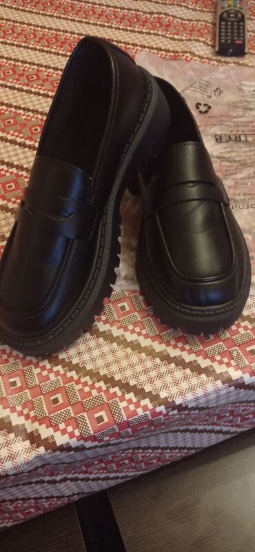 Yeni,(eqadan alınıb)40 razmer,üstü göy parçalı,qadın üçün lofer ayaqqabı(yaxın ərazi və metro xətti üzrə çatdırılma)