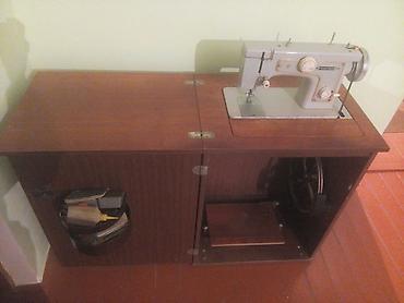 Tikiş maşını və inteqrə olunmuş taxta şkaf-masa dəsti. Xüsusiyyətlər: - Mekanik tikiş maşını, stolun içinə quraşdırılmış konstruksiya - Ayaq pedalı ilə idarəetmə mexanizmi - Üst paneldə sap gərgin...