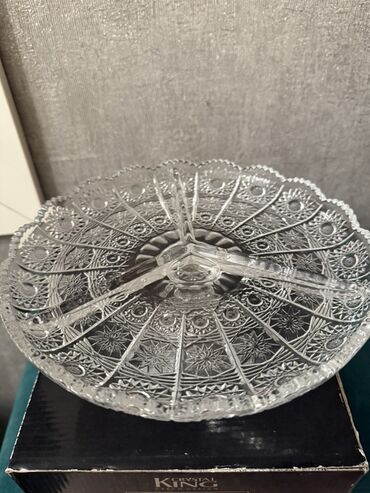 Bohemia Crystal istehsalı olan, zərif naxışlarla bəzədilmiş şüşə qab. Dairəvi formaya malikdir və dekorativ element kimi istifadə üçün idealdır. Həmçinin, meyvə və ya şirniyyat üçün də istifadə olu...
