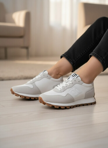 Lufian kişi krossovkaları - Brend: Lufian (LFN loqolu) - Rəng: Ağ üst hissə, boz zamuş burun və daban zonaları, yan hissədə qara zolaq - Material: Kombinə edilmiş zamuş və sintetik/deri üst hissə,...