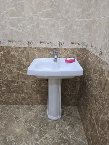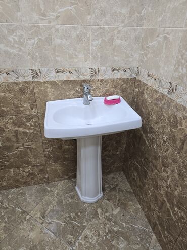 Ağ rəngli keramika Çanaq və iki geniş siyirməli ağ qapalı şkafı olan