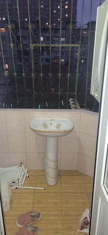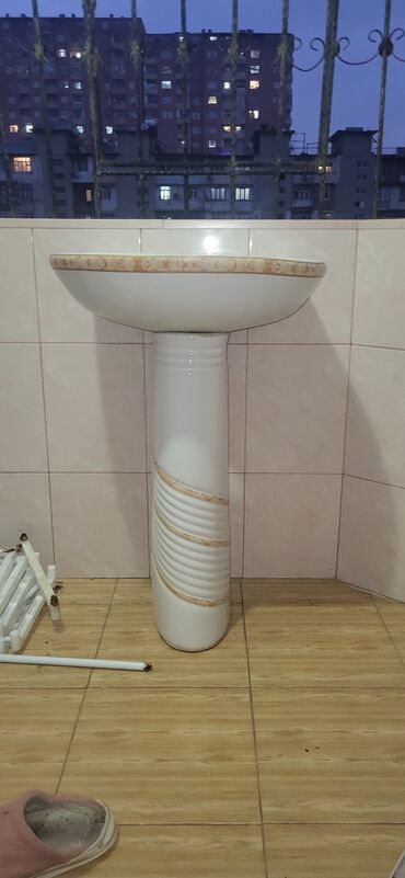 - Ölçülər (təxmini): lavabonun eni ~55–60 sm, dərinliyi ~45 sm; sütunun hündürlüyü standart (təxminən 80–85 sm)