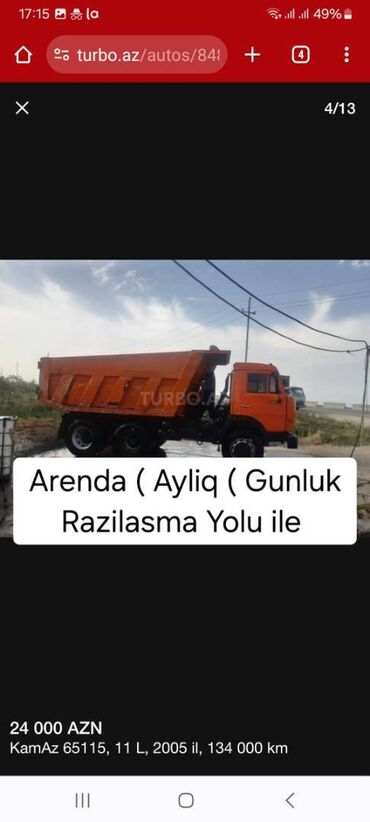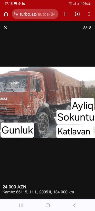 Arenda ...Veri̇li̇r ...Qarabag bolgesine butun rayonlara verilir ) baki erazisin de de katlavan sokuntu dasinmasi ) bulok kubik dasinmasi ) karbonat dasinmasi neye lazimdirsa isdede bilerik )) kamaz hal hazirda baki da di ..Bosdu )