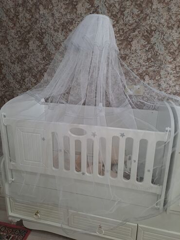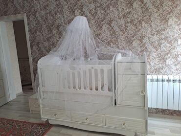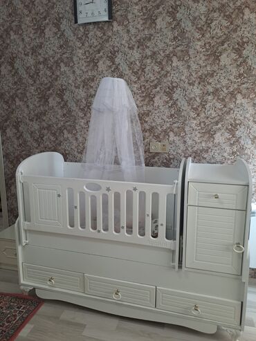Uşaq otağı üçün həm yerə qənaət edən, həm də saxlama imkanları geniş olan çoxfunksiyalı beşik. Brend adı: Aymİni.