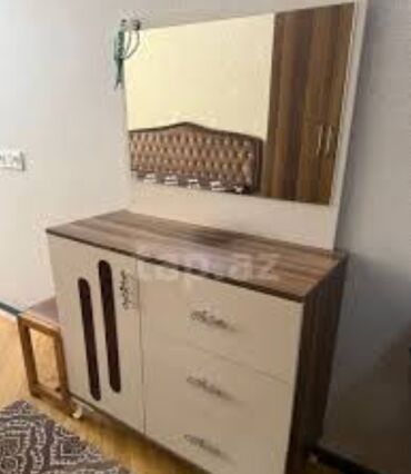 su qiymetine gugulu termo tecili satilir Geniş güzgülü komod/dresser. - Material: ağac teksturasında laminat. - Rəng: tünd qəhvəyi və krem kombinasiyası. - Üst hissədə iri ölçülü, çərçivəli güzgü ...