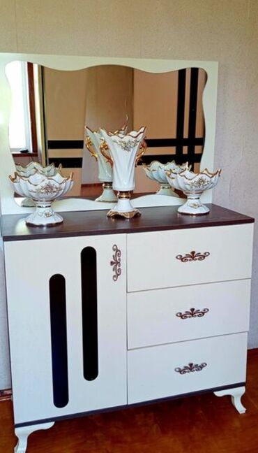 Ayna ilə komod/tuvalet masası dəstləri - Müasir dizayn: sadə xətlər, ağ və krem tonlarında neytral rəng palitrası, istənilən yataq otağına uyğun. - Geniş saxlama: 3–4 ədəd dərin çekmece; aksessuar...