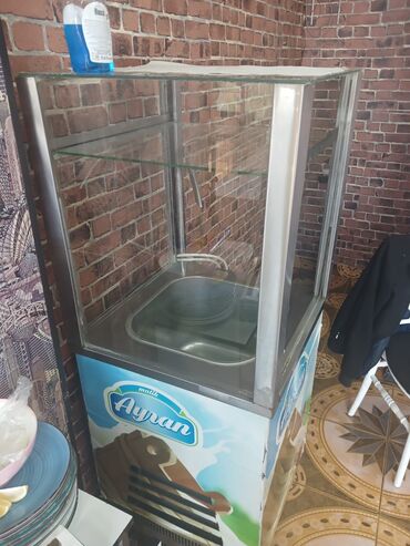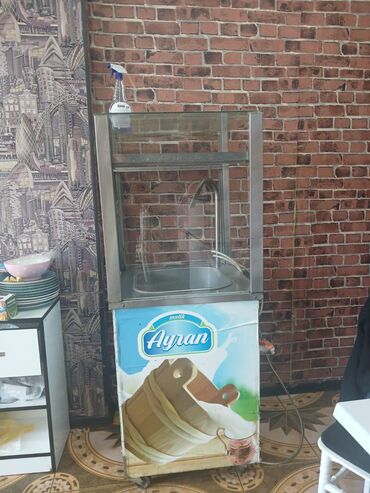 Ayran dispenseri və şüşə vitrinli soyuducu kabinet