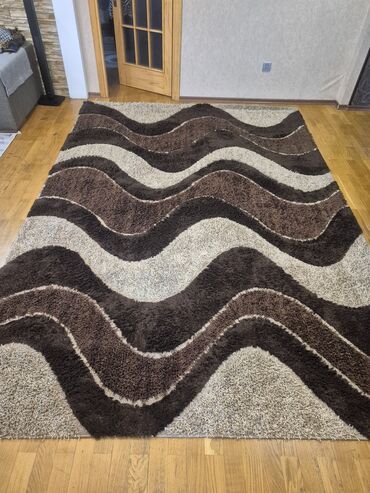 Uzun dəhliz xalçası - Rəng: tünd bordo (mərkəz), kənarlarda bej və nazik qırmızı zolaqlar - Naxış: incə zolaqlı tekstura - Forma: düzbucaqlı, dar və uzun (dəhliz, koridor və ya yataq otağı kənarı ...