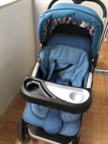 1 aydı alınıb 190 manata hər iki tərəfdən idarə olunur çox rahat və möhkəmdir.3-4 dəfə sürülüb.həm oturaq,həmde uzatmaq,yatırmaq olur körpəni.