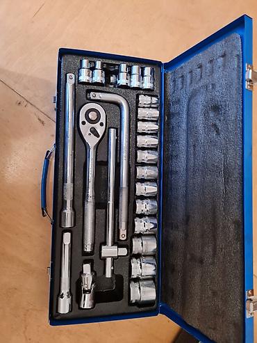 - Metal qutuda başlıqlı-prolongatorlu mexaniki çarx açar komplekti: ratchet, Т-tip və L-tip qol, uzatma çubuqları, kardanik birləşmə, müxtəlif ölçülü 1/2" başlıqlar.