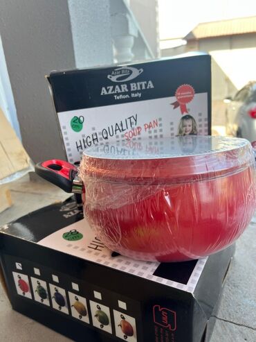 Şəkillərdə həm klassik şorba qazanları, həm də tomat dizaynlı dəst elementləri görünür. Mətbəxinizdə həm praktik, həm də dekorativ istifadə üçün uyğundur.