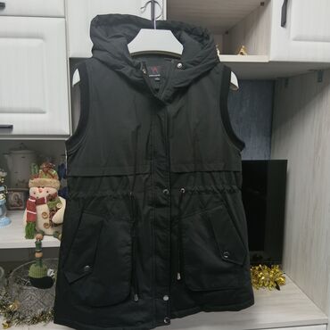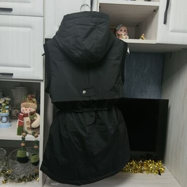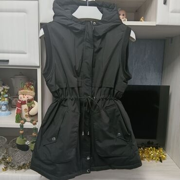 RUS: Женская жилетка отлично сохраняет тепло, но не парит в слишком жаркий день. Стильный дизайн с поясом на талии и капюшон придает жилетке модный акцент и подчеркивает Вашу женственность. В отличном состоянии